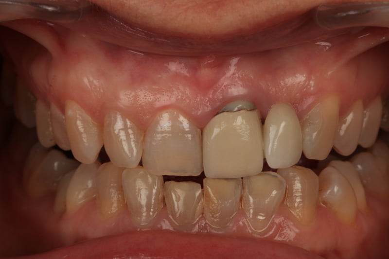 Para mejorar su sonrisa le hicimos una cirugía mucogingival de aumento de encía para ganar volumen donde le faltaba un diente. Tras la cirugía le colocamos carillas de porcelana para conseguir uniformidad y una sonrisa luminosa y natural.