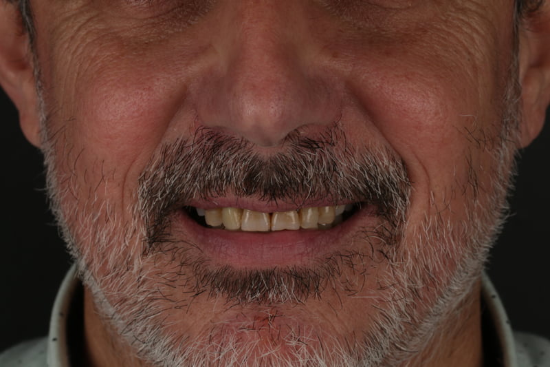 Su caso ha consistido en un tratamiento multidisciplinar que ha empezado con tratamiento de encías. Tras tener la boca en salud, le realizamos un tratamiento de ortodoncia con brackets para colocarse implantes en piezas que le faltaban y terminar el caso con un tratamiento estético con carillas de porcelana.